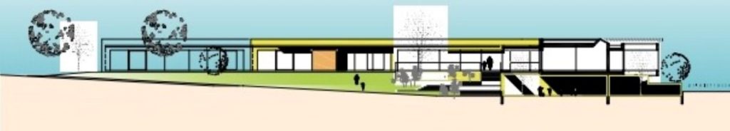 Das gegenständliche Grundstück weist ein leichtes Gefälle in Nord-Südrichtung auf und ist im Westen von der Sportplatzanlage, im Norden und Osten von einer im ländlichen Raum typischen, ein- bis zweigeschossigen Einfamilienhausbebauung umschlossen. Nach Süden und Westen ist der Blick von der erhöhten Lage des Grundstückes aus frei bis zum nahegelegen nächsten Ortsteil. Unser Bebauungsvorschlag sieht einen eingeschossigen, L-förmigen Baukörper vor, der sich zu den Straßen im Norden und Westen, bzw. zu der bestehenden Bebauung hin abgrenzt und sich nach Südwesten zu Landschaft und zur Sonne öffnet.